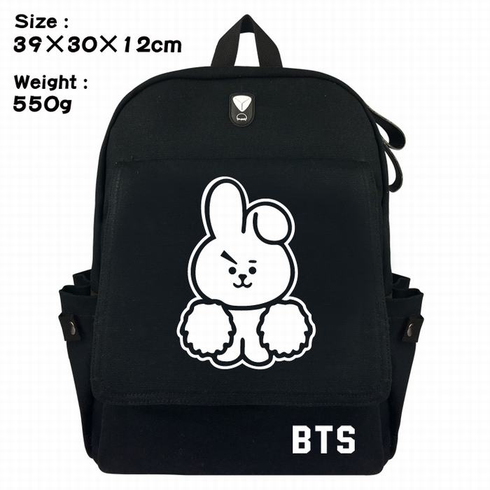 BTS防弹少年团小兔标志帆布翻盖丝印双肩背包