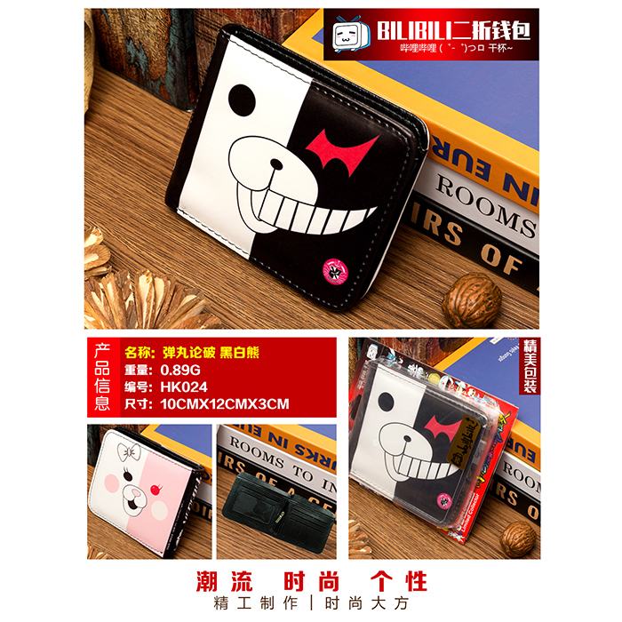 HK024-弹丸论破黑白熊PU二折短款钱包
