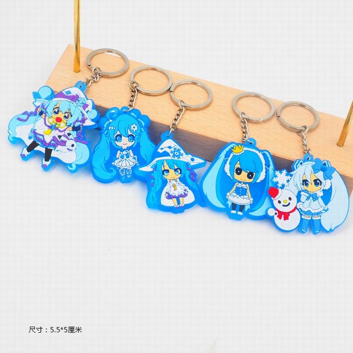 初音未来5款蓝色色雪初音女孩软胶钥匙扣混5个起批