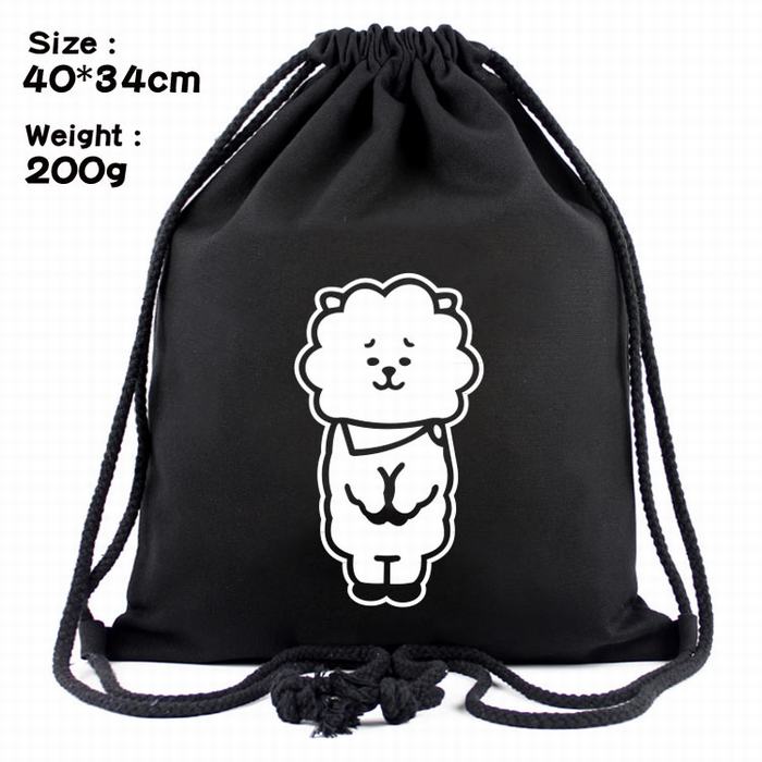 BTS防弹少年团小羊标志丝印帆布束口背包