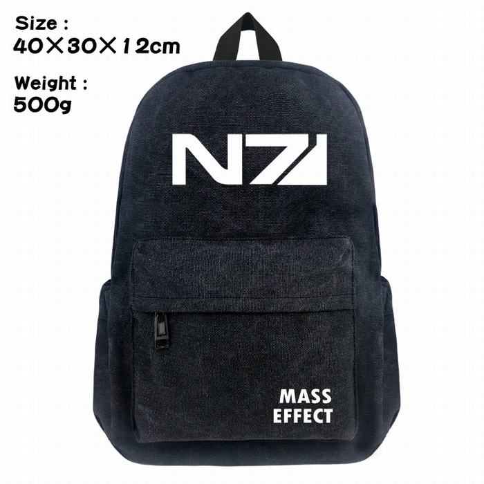 质量效应标志丝印帆布双肩背包