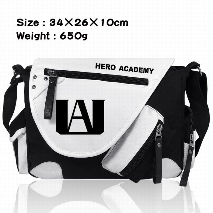 我的英雄学院 字母标志加厚PU皮帆布布拼色黑白挎包