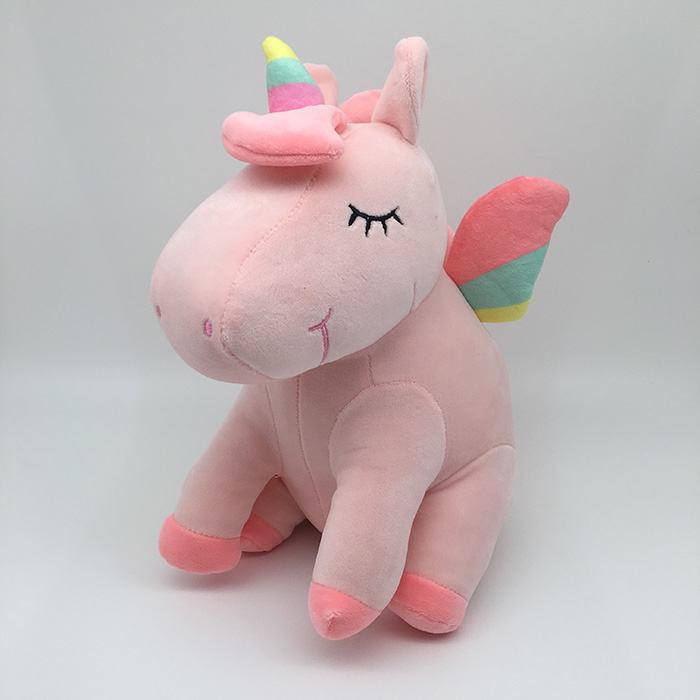 独角兽坐姿毛绒公仔闭眼粉色30CM250克