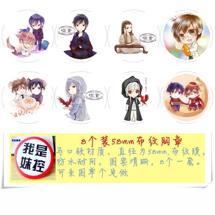 哑舍B款 8款一套圆形布纹胸针58MM 8个装