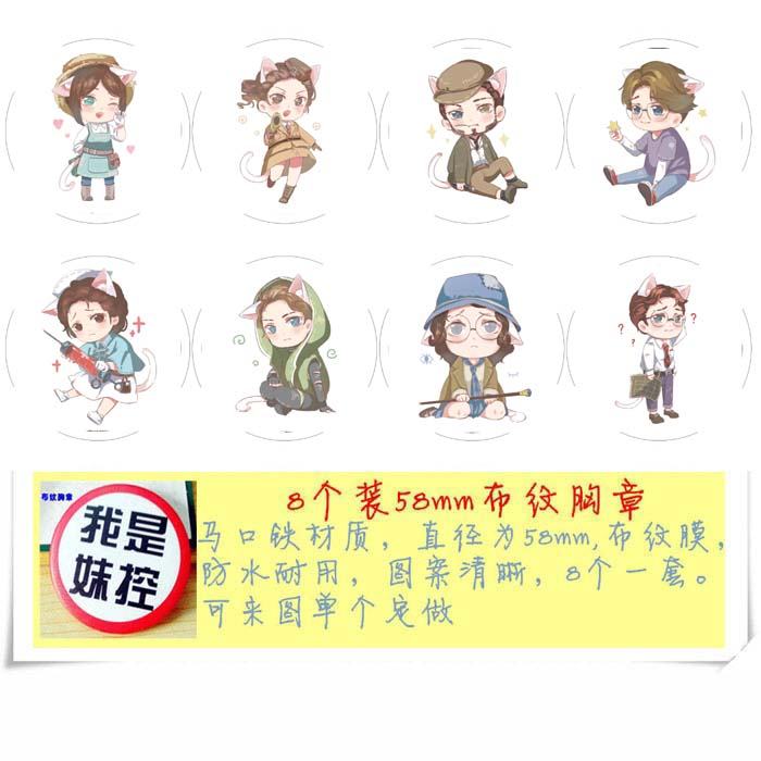 第五人格A款 8款一套圆形布纹胸针58MM 8个装