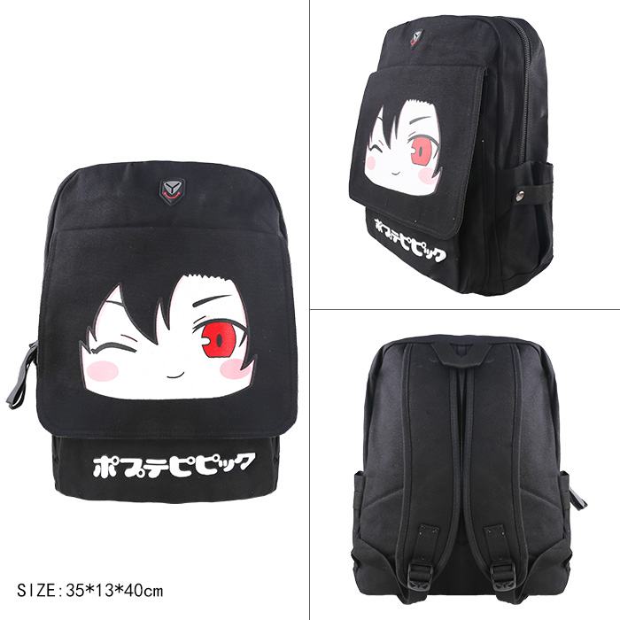 POP子和PIPI美的日常 PIPI美表情包 帆布黑色拉链背包双肩包 35X13X40CM