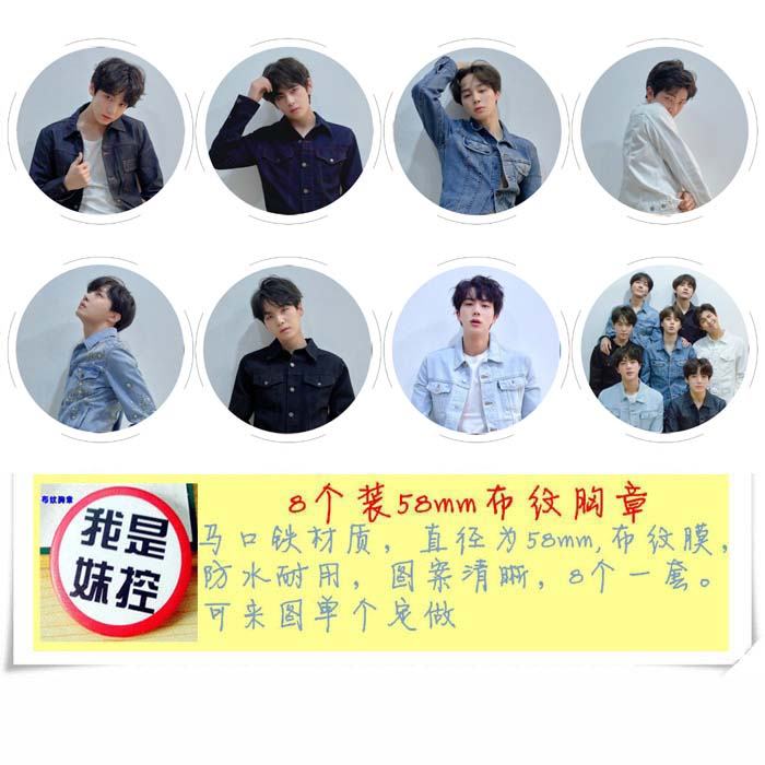 防弹少年团-BTS D款 8款一套圆形布纹胸针