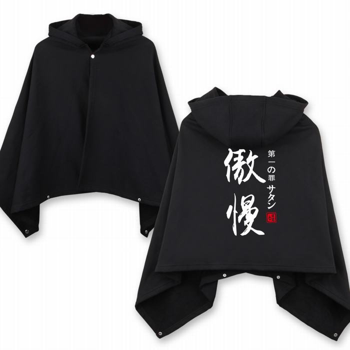 七宗罪披风 傲慢罪黑色(白字)不倒绒棉双合扣连帽 均码
