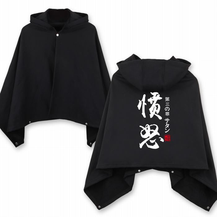 七宗罪披风 愤怒罪黑色(白字)不倒绒棉双合扣连帽 均码