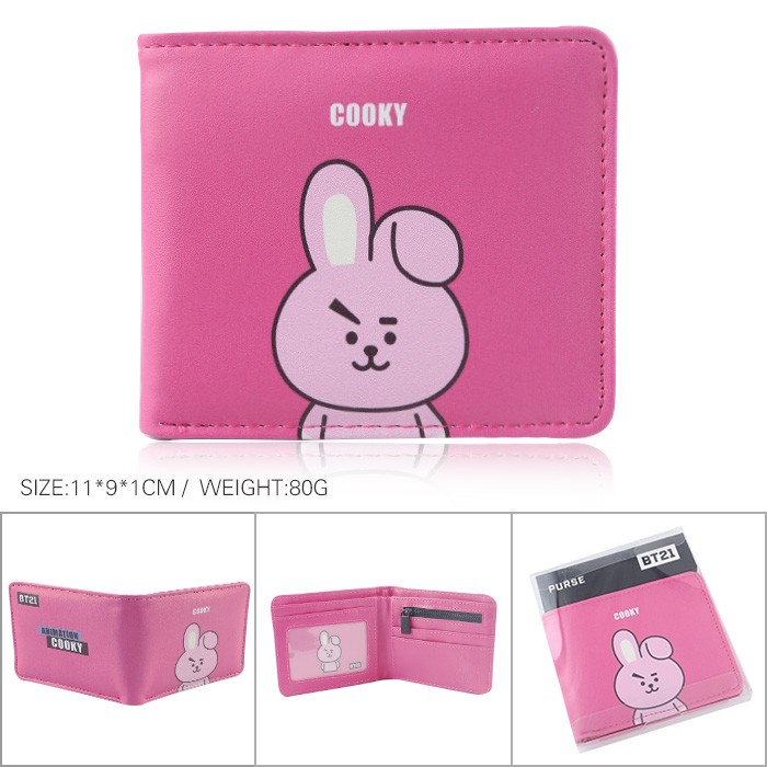 BTS 防弹少年团 BT21卡通D款全彩印花短款钱包 11X9X1CM 80G