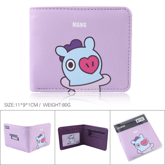 BTS 防弹少年团 BT21卡通F款全彩印花短款钱包 11X9X1CM 80G