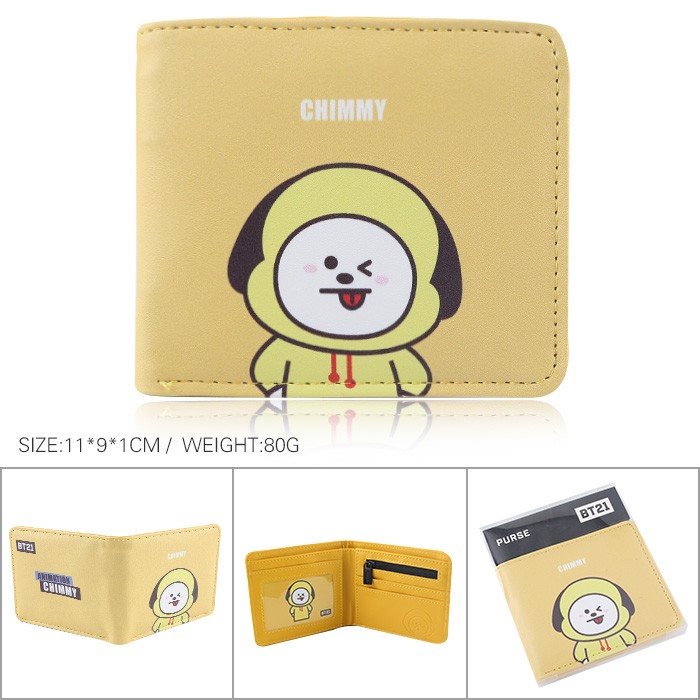 BTS 防弹少年团 BT21卡通G款全彩印花短款钱包 11X9X1CM 80G