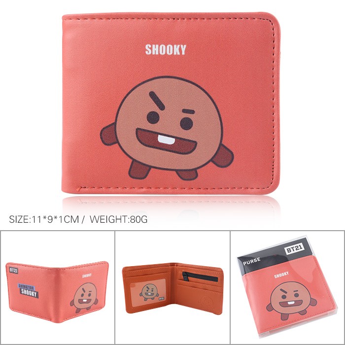 BTS 防弹少年团 BT21卡通I款全彩印花短款钱包 11X9X1CM 80G