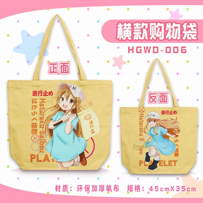 HGWD006-工作细胞 动漫单肩帆布拉链购物袋 45X35CM