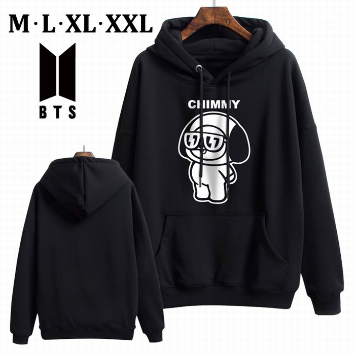 BTS-BT21 防弹少年团 黑色印花带帽加绒加厚卫衣 C款 M L XL XXL