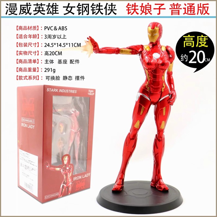 漫威英雄 女钢铁侠 铁娘子 普通版 盒装手办摆件模型 20cm 291g