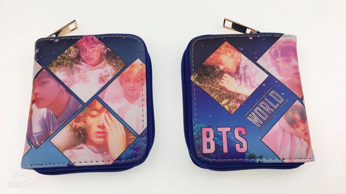 BTS 防弹少年团 菱形图案款 PU斜纹二折短款钱包拉链款