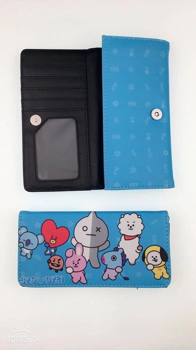 BTS 防弹少年团 BT21集合蓝色款 全彩按扣PU长款钱包