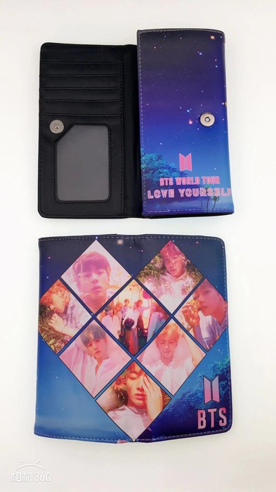 BTS 防弹少年团 菱形图案款 全彩按扣PU长款钱包
