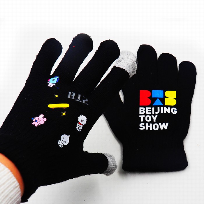 BTS 防弹少年团 BT21集体字母款黑色印花全指手套电容点触手套-02
