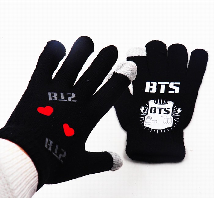 BTS 防弹少年团 防弹衣款黑色印花全指手套电容点触手套-01