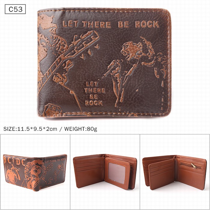 ACDC乐队 棕色C53 对折压纹短款皮钱包 11.5X9.5X2CM 80G