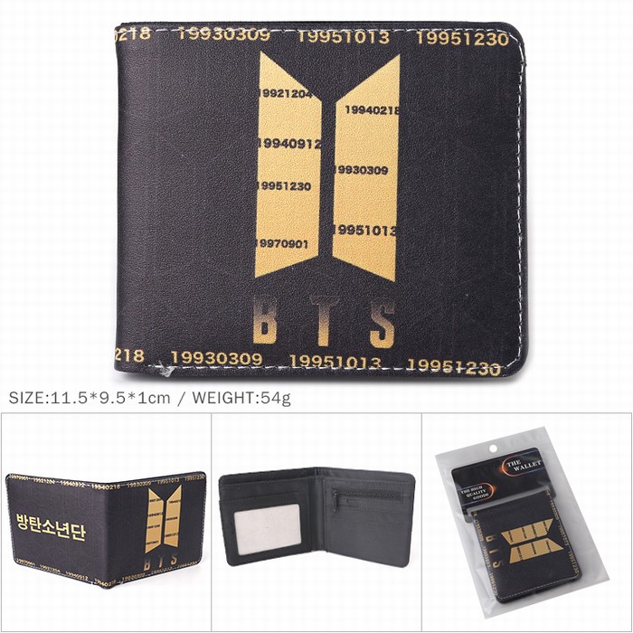 BTS 防弹少年团 黑色款PU斜纹二折短款钱包