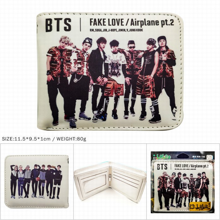 HK-253-BTS-防弹少年团-FAKE-LOVE 短款彩图二折钱包11.5X9.5X1CM 80G
