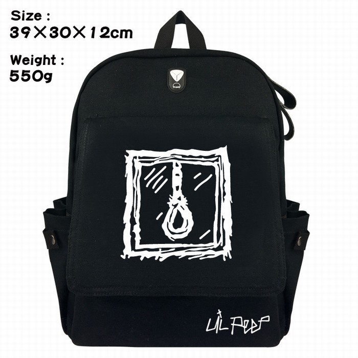 美国说唱歌手Lil peep利尔皮普-黑色正方形帆布翻盖背包双肩包39X30X12CM