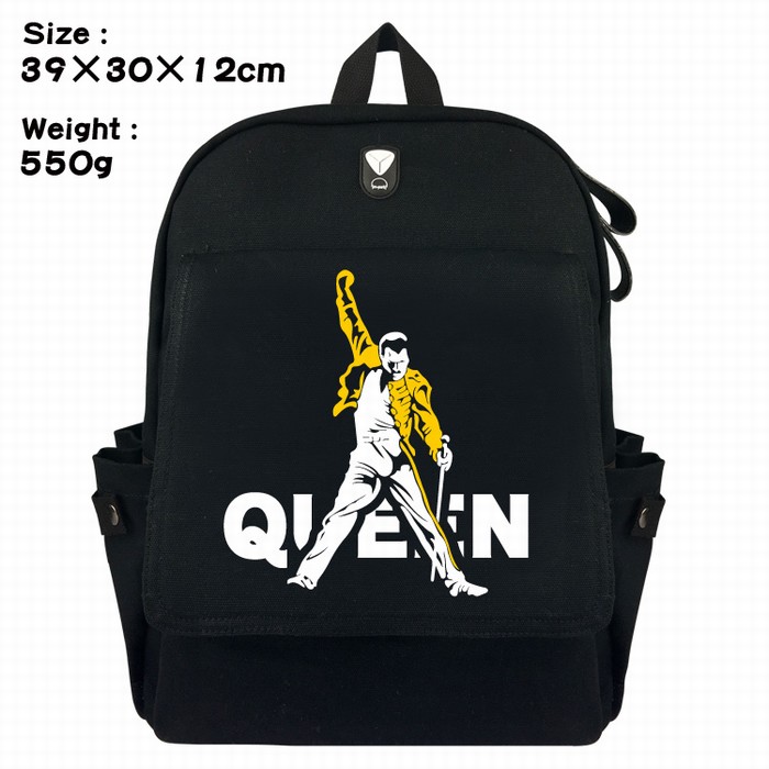 英国皇家乐队主唱Freddie Mercury-黑色帆布翻盖背包双肩包39X30X12CM