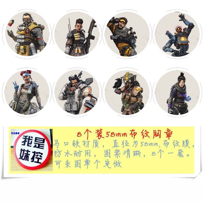 Apex-legends英雄A 8款一套圆形布纹胸针 58MM