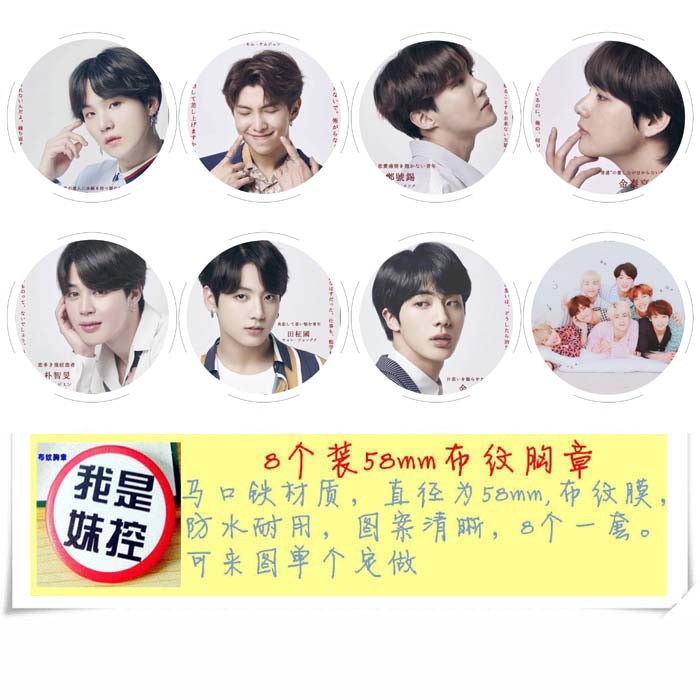 BTS-10 防弹少年团8款一套圆形布纹胸针 58MM