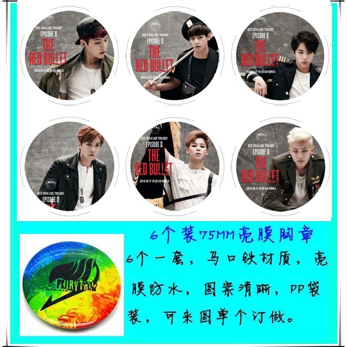 BTS防弹少年团-2 6个装75mm亮膜徽章胸针胸章