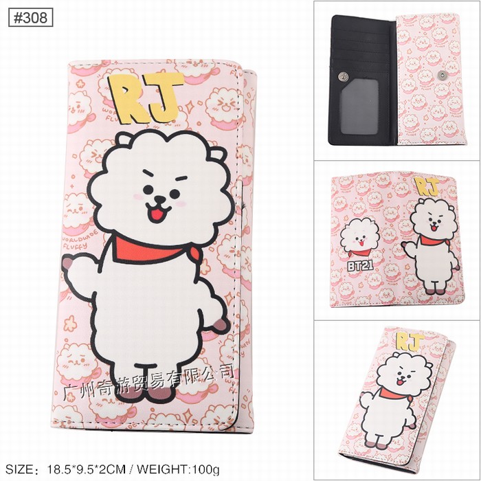 BTS防弹少年团 BT21小羊308全彩按扣PU长款钱包
