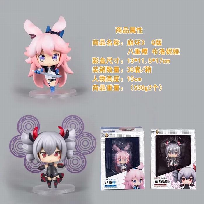 崩坏学园3Q版2款一套 八重樱 布洛妮娅 盒装手办摆件模型 10CM 一箱30套