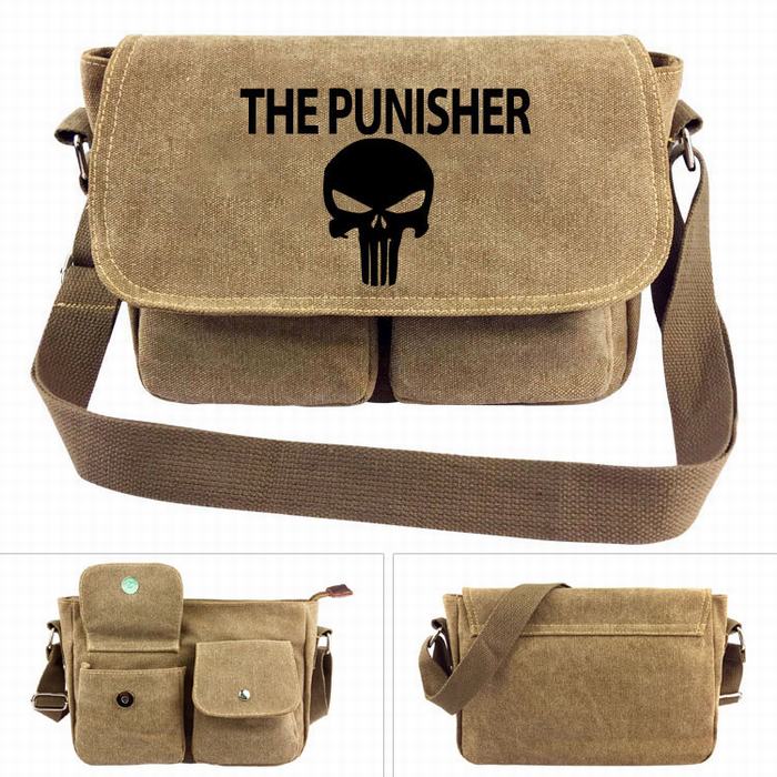 惩罚者-01卡其色帆布斜肩挎包 28X7X20CM