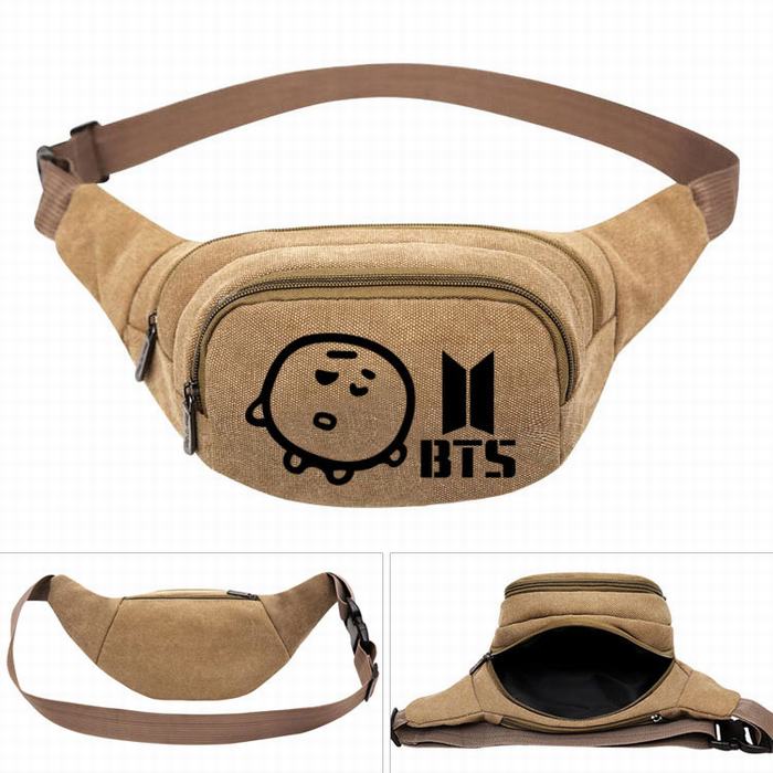 BTS防弹少年团 BT21饼干 卡其色休闲户外运动帆布丝印腰包胸包27X5X14CM