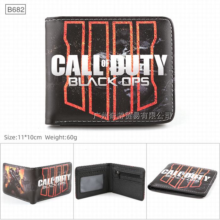 使命召唤 B682 PU斜纹二折短款钱包 11X10CM