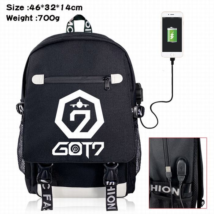 GOT7韩国明星周边 帆布丝印双肩背包数据线背包