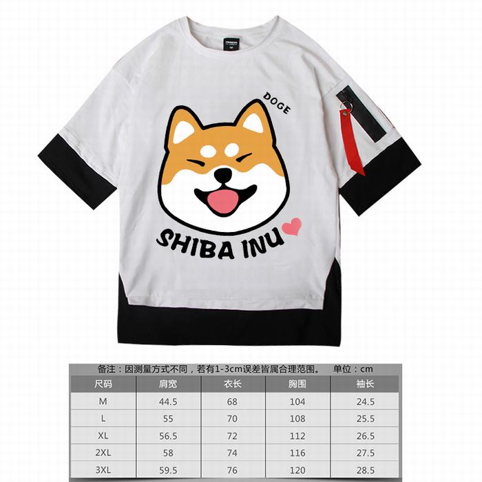 神烦狗 假短袖 柴犬头 白色 宽松棉质潮流短袖T恤上衣 M-3XL 共5个码