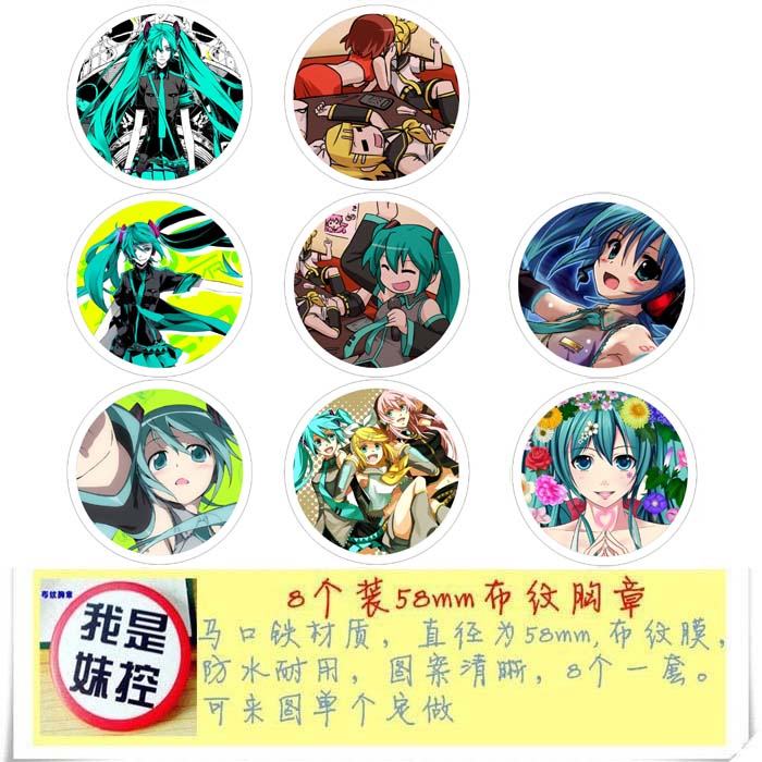 初音未来-1 动漫马口铁徽章胸章圆形布纹胸针 8款一套 58MM