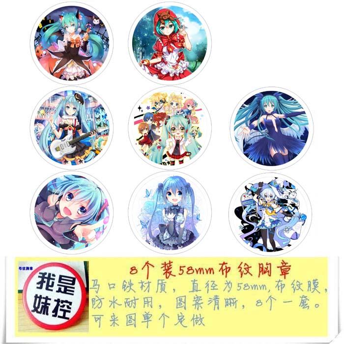 初音未来-2 动漫马口铁徽章胸章圆形布纹胸针 8款一套 58MM