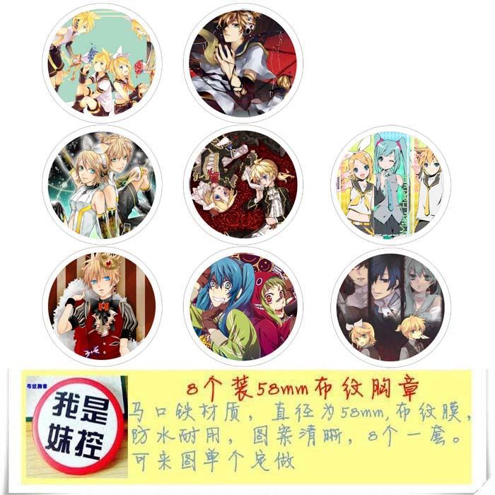 初音未来-5 动漫马口铁徽章胸章圆形布纹胸针 8款一套 58MM