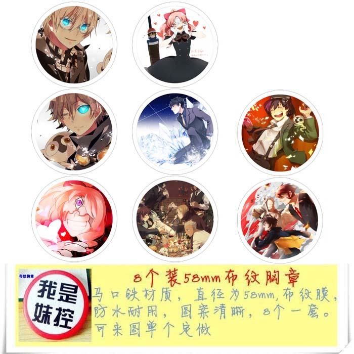 学界 动漫马口铁徽章胸章圆形布纹胸针 8款一套 58MM