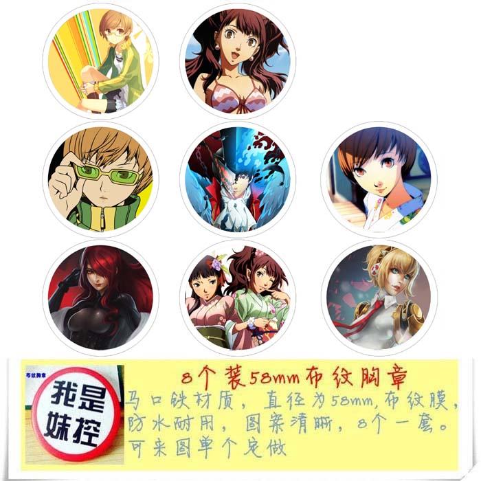 学院孤岛-2 动漫马口铁徽章胸章圆形布纹胸针 8款一套 58MM