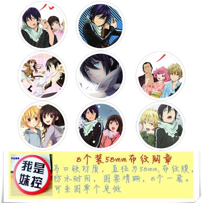 野良神 动漫马口铁徽章胸章圆形布纹胸针 8款一套 58MM