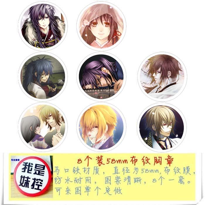 薄樱鬼 动漫马口铁徽章胸章圆形布纹胸针 8款一套 58MM