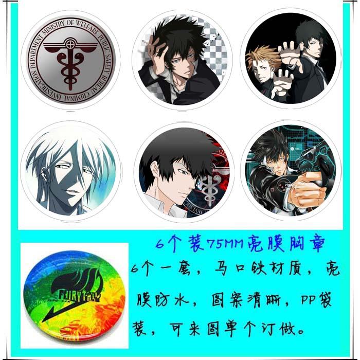 心理测量者 动漫马口铁亮膜徽章胸章圆形布纹胸针 6款一套 75MM