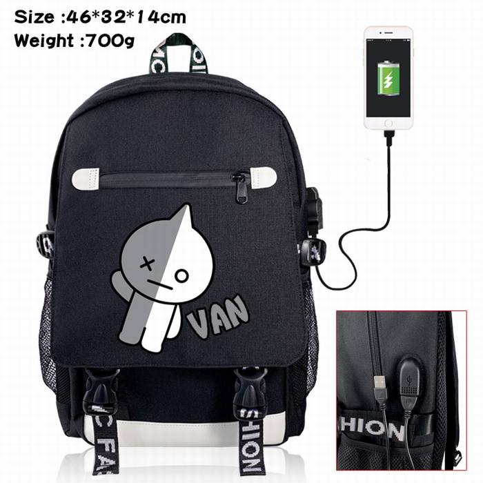 bts-11A 防弹少年团 黑色 彩印数据线双肩背包