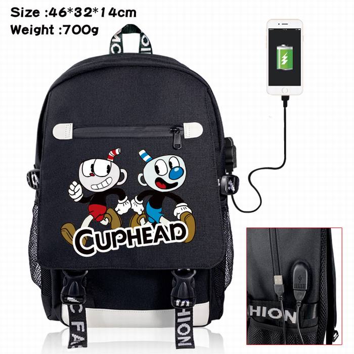 茶杯头-7A 黑色 彩印数据线双肩背包